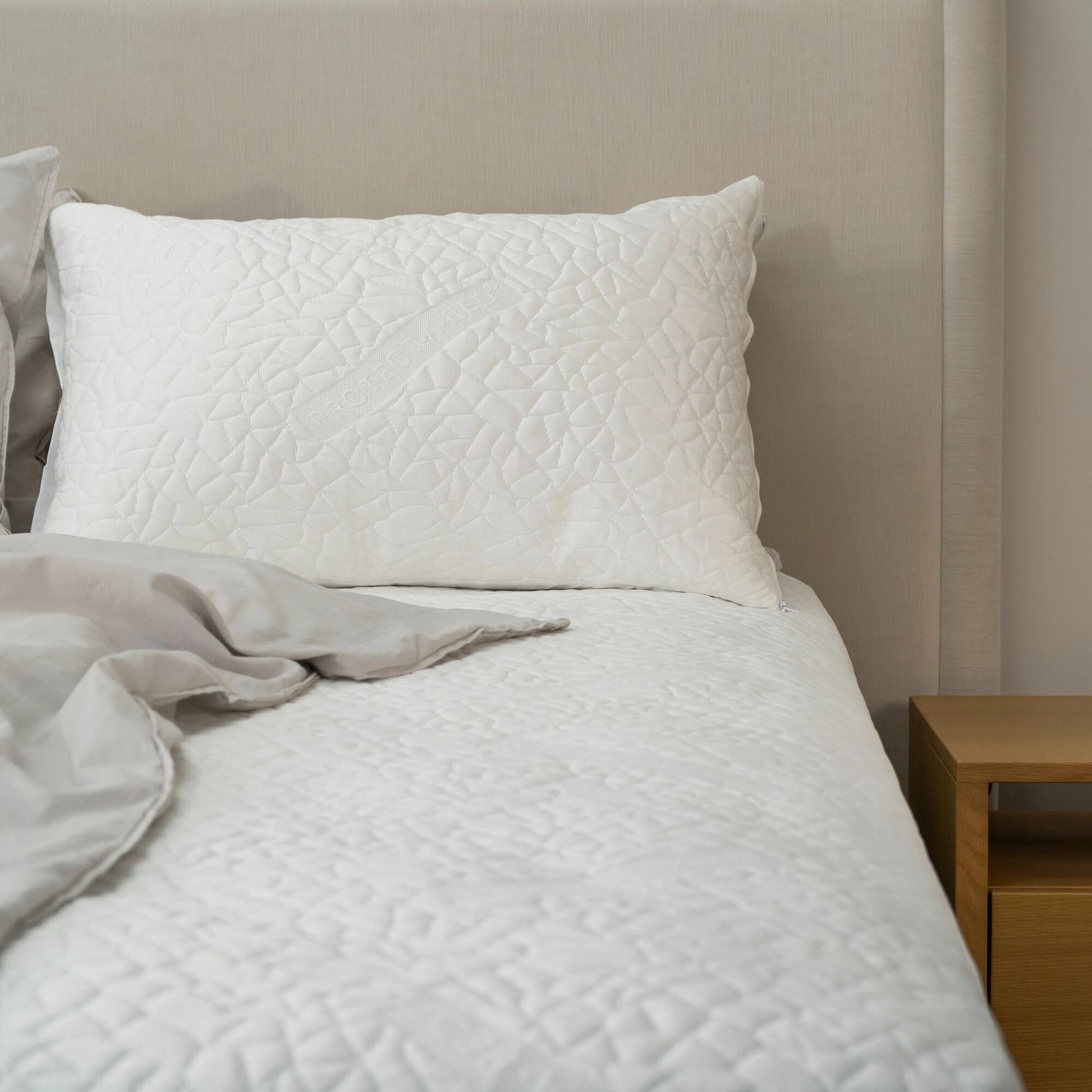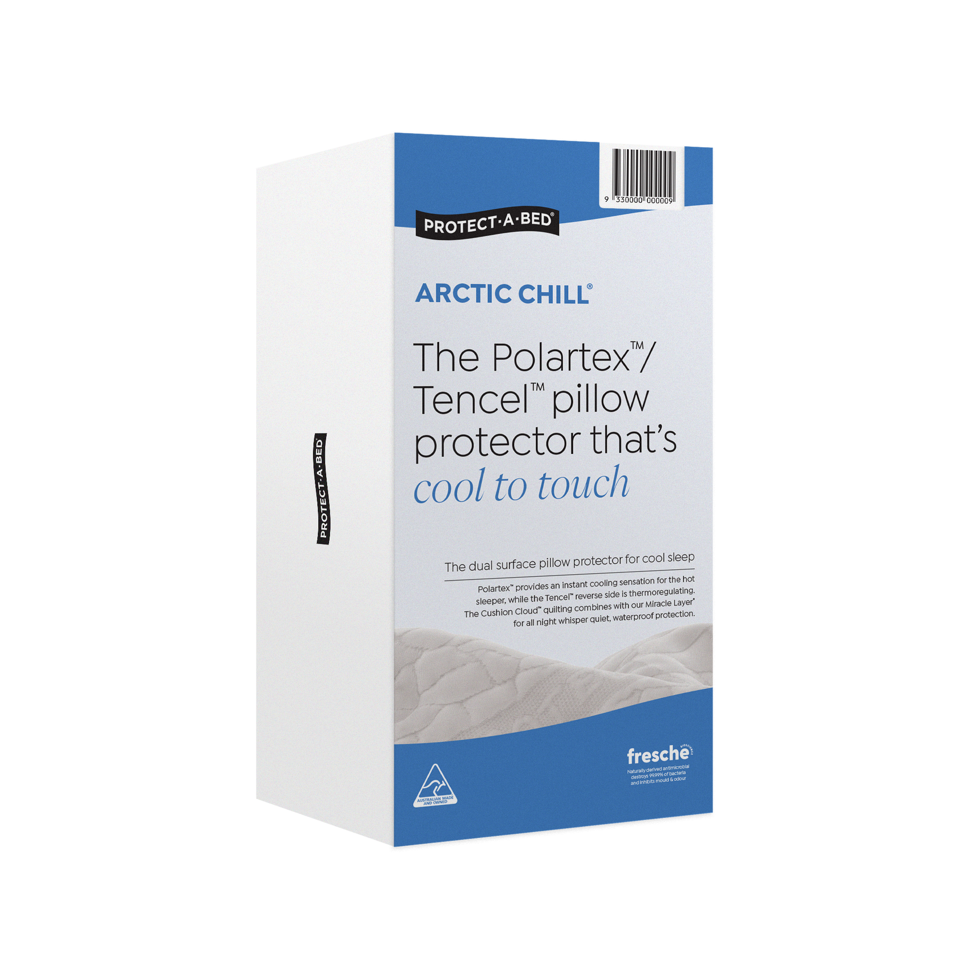 The dual surface pillow protector for cool sleep. One side, crafted with Polartex™, provides an instant cooling sensation for the hot sleeper, while the Tencel™ reverse side is thermoregulating. Ensuring a luxurious and cool sleep.