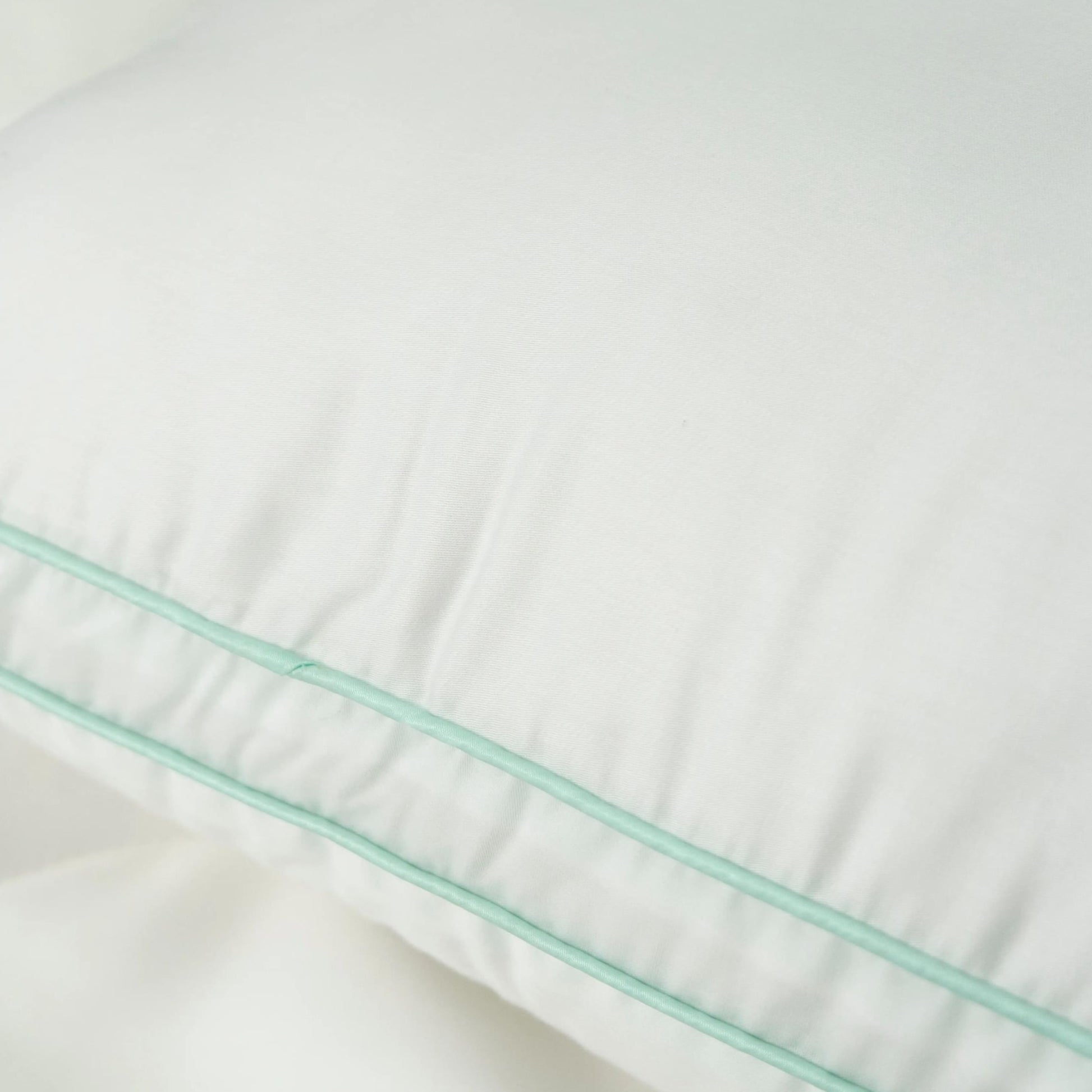 COVER: 100% Tencel™, with a smooth sateen finish and green piping | FILLING: 10% Tencel™, 30% Ingeo, 60% Polyester | ANTIMICROBIAL TREATMENT: Fresche®