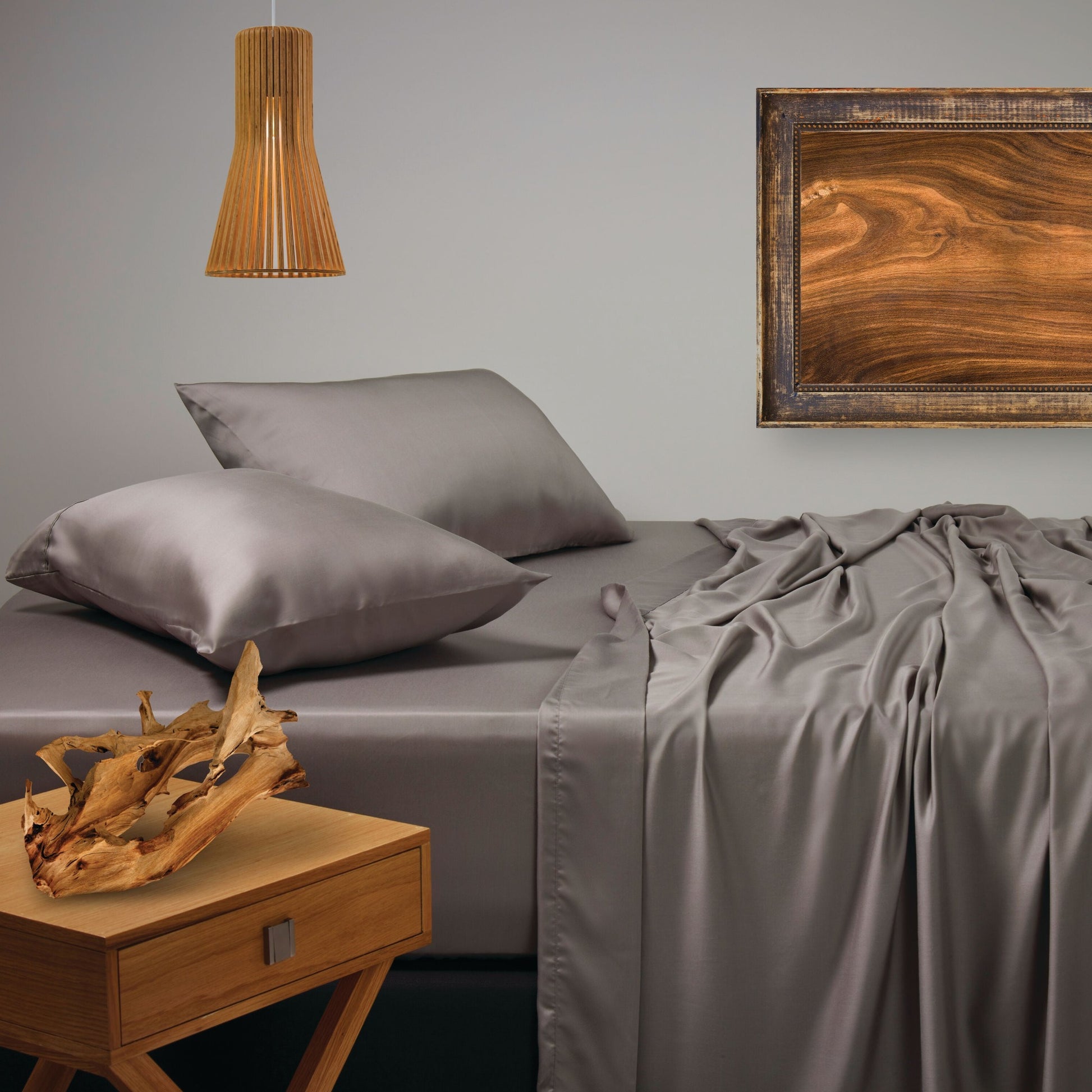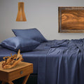 This sheet set is crafted from Tencel, a sustainably sourced material that is soft and smooth with a beautiful sheen. It is moisture-wicking and thermoregulating, keeping you cool in summer and warm in winter.