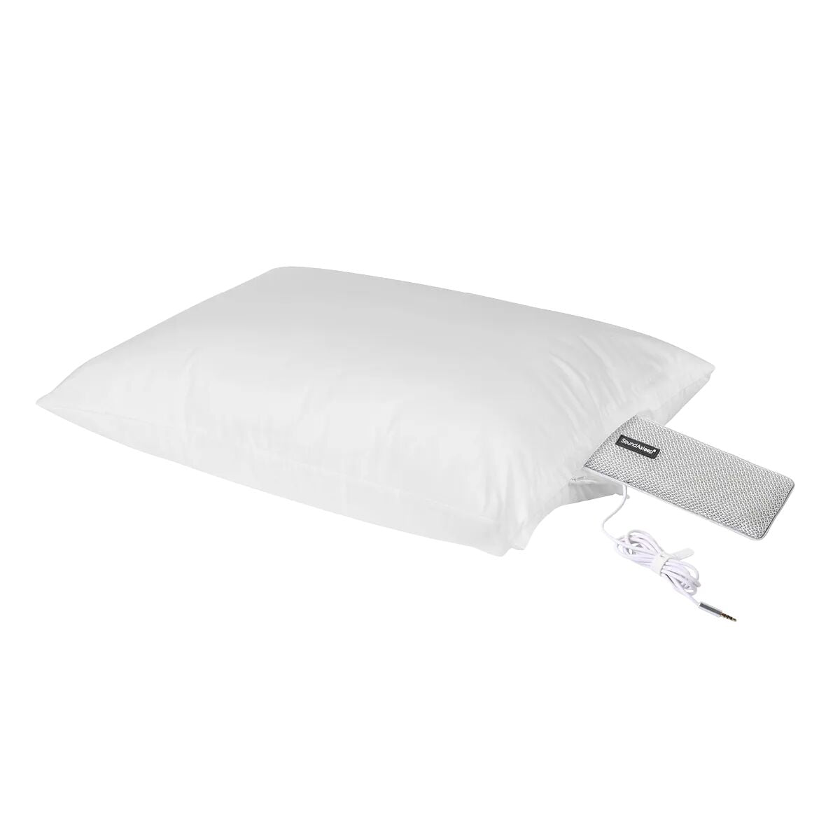 Insert the SoundAsleep ® Sound Bar between your pillowcase and the pillow, or inside your pillow if you can unzipper it. Ensure it is positioned in the centre or where your head will lay at night. Use Bluetooth or the phone connection to connect your phone or tablet and your music or relaxation app of choice.
